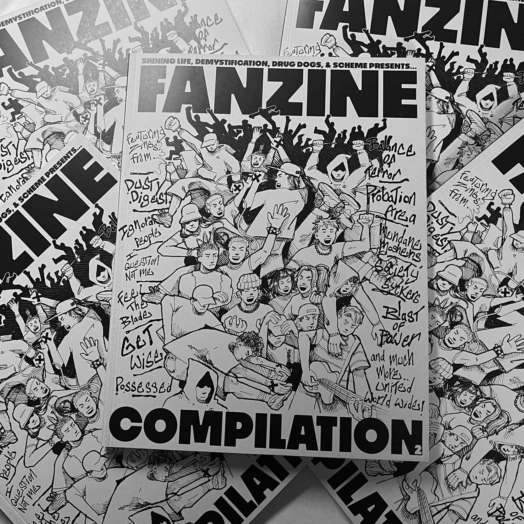 Featuring zines from Dusty Digest, Ignorant People, I Question Not Me, Feel The Blade, Get Wise, Possessed, Balance of Terror, Probation Area, Mundane Moshers, Society Suckers, Blast of Power, and many more!